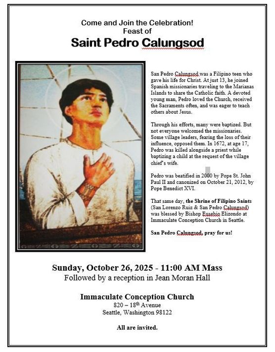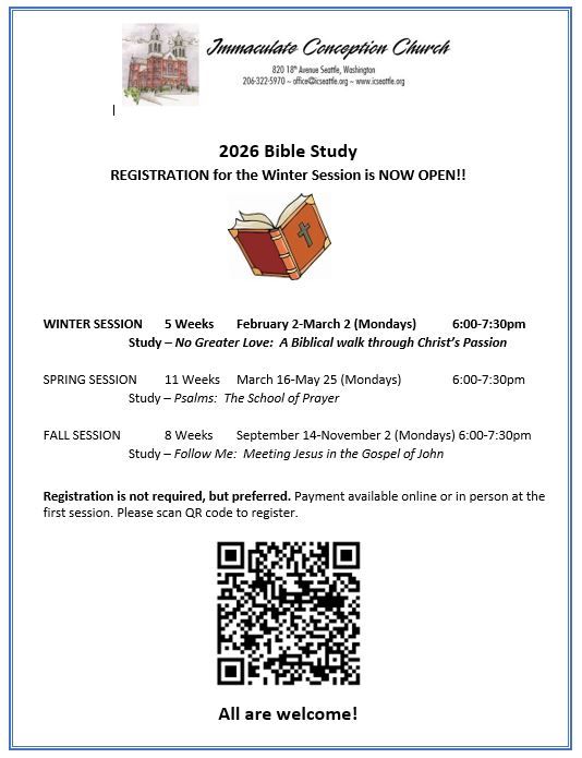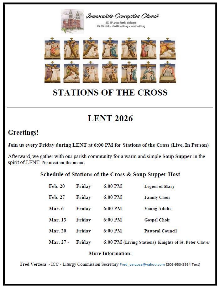 Inspired by the Holy Spirit, we live out our faith through worship, community, and stewardship. Immaculate Conception Church is the oldest standing Catholic church in Seattle. Founded by the Jesuit Fathers, it was built in 1904 and declared a historical landmark by the Seattle Landmarks Preservation Board in 1974.